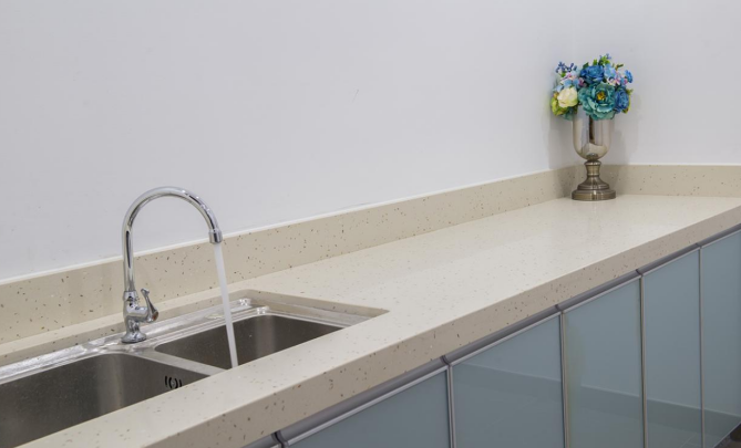 石英石其表面層和材料內部同樣致密均勻,無毛細孔和縫隙,加之內置一定的抗菌素,能夠杜絕細菌的滋生,安全潔凈,可與食品和皮膚等直接接觸,有益食品衛生和人體健康。
