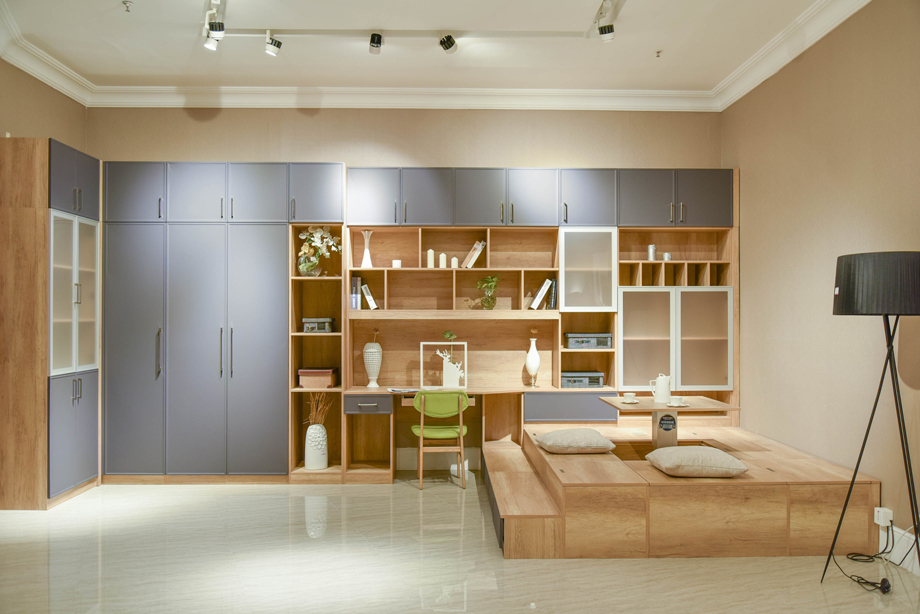 選擇一套合適的領尚家居的榻米,輕松擁有一間書房+ 客房+休閑室+儲物間就不在話下。領尚家居榻榻米,就可滿足你的多重需求,一套可根據戶型量身定制的組合家居,讓家里空間使用率瞬間提升。量身打造的壁柜不僅科學合理布局墻上收納空間,不管是擺飾還是藏書,都能有合理的擺放空間,并且還貼心添加了書桌的設置,最大化地使用了壁柜的功能,將書房的辦公與收納集于一體。