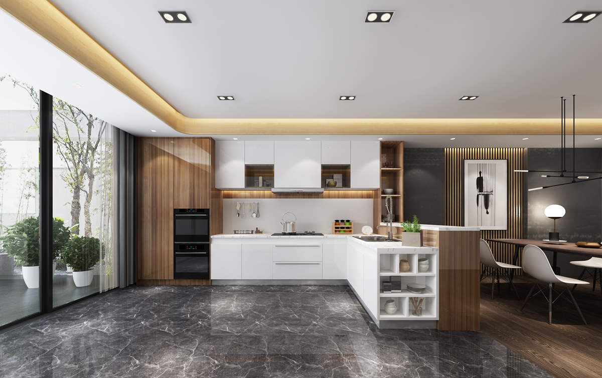 櫥柜面板的抗油污能力,則與面板的材質相關。烤漆面板經過涂層的固化之后,耐候性和穩定性都變高,具有一定抗油污能力,但是如果長期在油煙熏蝕的環境下,色彩會出現一定的色差。吸塑面板經過PVC膜模壓成型,耐污性能很好,也容易清潔。通常來說,表面光滑的材質會比磨砂材質在防污能力上更勝一籌,減少油污的吸附面積,并且也容易清洗。