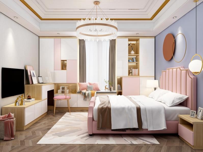 在選材時要注重家具的質感,材質由整體家居的風格來決定,這樣無論是在使用上還是在視覺呈現上都能達到雙倍效果。如中式風、原木風等可選擇櫻桃木、胡桃木、白橡木等;奶油、輕奢風可選擇霧面或絲絨軟包。