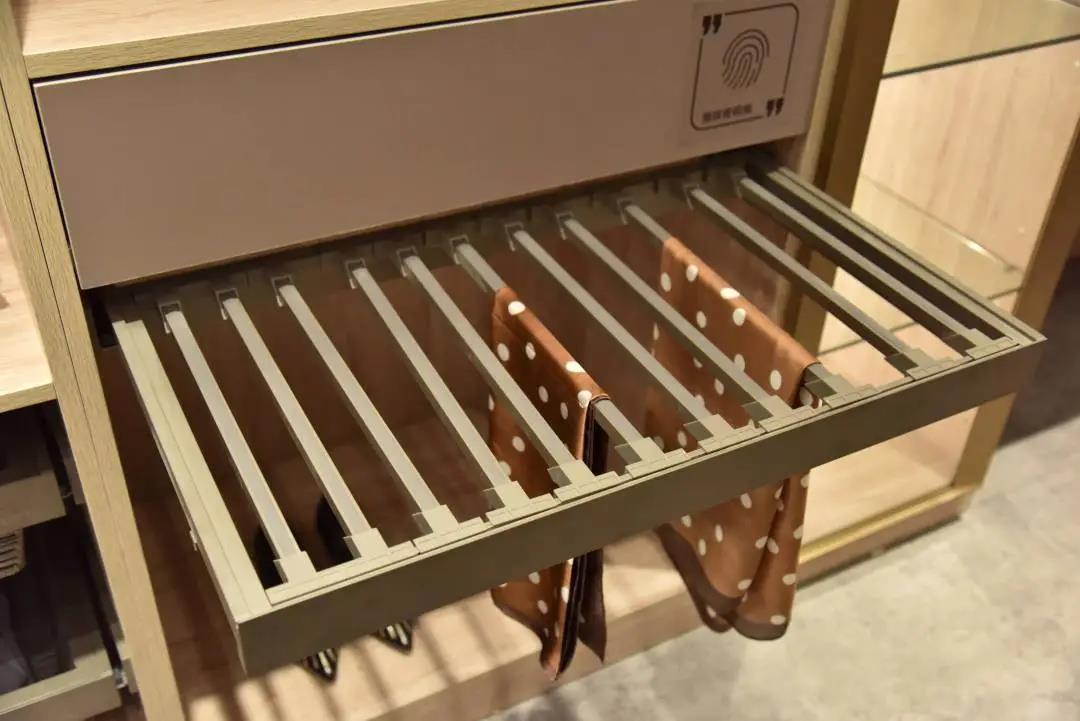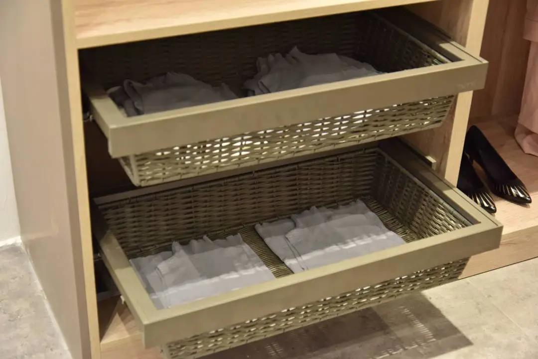 領尚衣柜-城市記憶,從生活細節出發,在設計過程中考慮用戶真正的使用體驗,針對不同收納需求,設置不同收納組件——備用床品可專門放置在藤籃、鋁框西裝褲為男女主人整齊無痕的褲裝“保駕護航”、更有360°旋轉衣物籃提高翻找衣物的便利性。還怕生活小物件占位?抽屜收納組件將他們安排得妥妥當當!更有指紋密碼抽屜,提供安全省心的隱私空間。