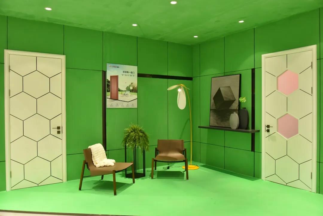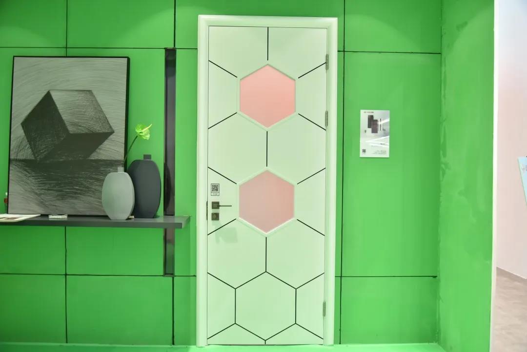 展會上,領尚帶來的“門面擔當”,吸引了眾人的視線——領尚油漆門,精選SPF木材,采用環保飾面,健康無憂;并采用優質純白色的油漆作主色調,可搭配現代人熱衷的各種家裝風格,輔以黑色線條繪制的蜂窩狀造型,更平添了一份現代的科技感和時尚性。