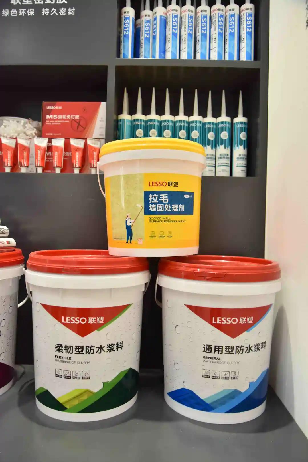 衛(wèi)生間滲水、天花板發(fā)霉、遇上雨天更是災(zāi)難現(xiàn)場(chǎng)……發(fā)霉?jié)B水現(xiàn)象如此嚴(yán)重,很可能就是房屋沒有做好防水工程。在防水的過程中,我們需要考慮到房子不同部位所受的水壓不一樣,結(jié)構(gòu)特點(diǎn)也不同,從而選擇適合的涂料組合。本次建博會(huì)展上聯(lián)塑防水涂料組合“藍(lán)墻綠地”的出現(xiàn),就解決您家中漏水滲水的煩惱。它針對(duì)墻體和地面,將涂料分為了藍(lán)、綠二色,打破以往的單一的涂料結(jié)構(gòu),也就是所謂的“藍(lán)墻綠地”。墻面可使用剛性防水涂料(聯(lián)塑通用型防水漿料),地面使用柔性防水涂料(聯(lián)塑柔韌型防水漿料),做到剛?cè)嵯酀?jì),滿足大部分人全屋防水需求。