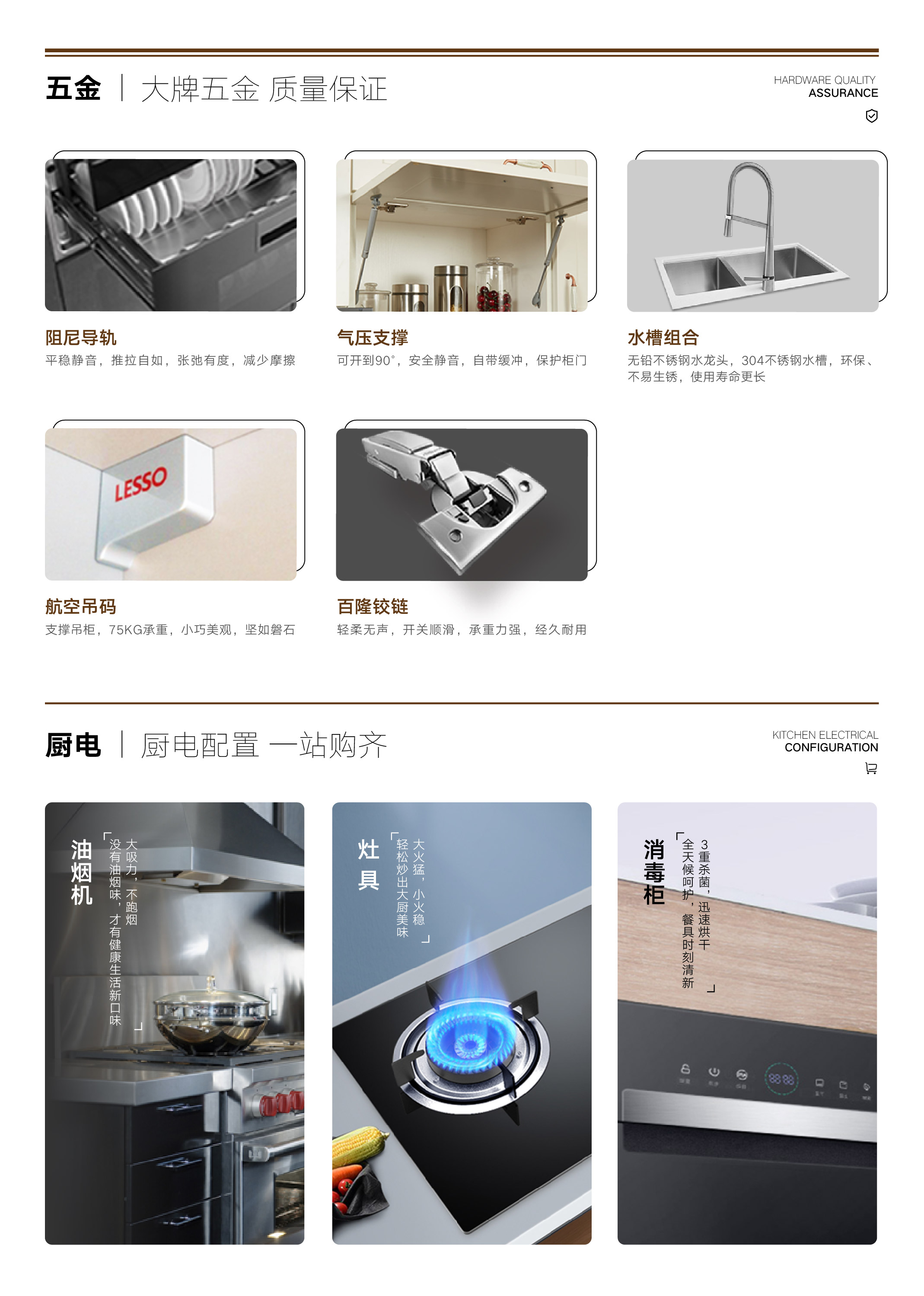 密封式收納柜:可存放鍋碗瓢盆以及不常用的調(diào)料、五谷雜糧。既能保證其密封性,不易粘塵和更適合保存,又能將雜亂藏于柜內(nèi)。