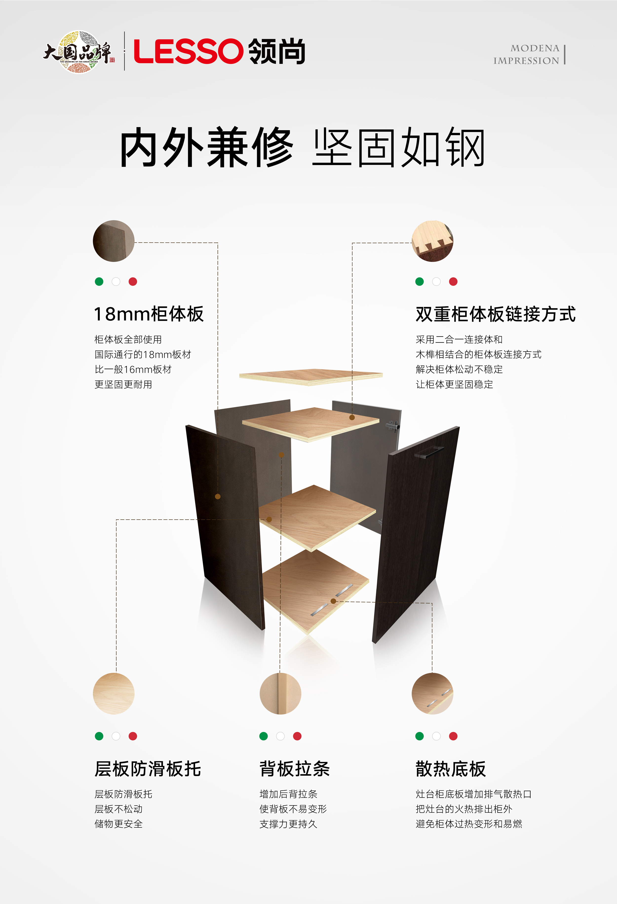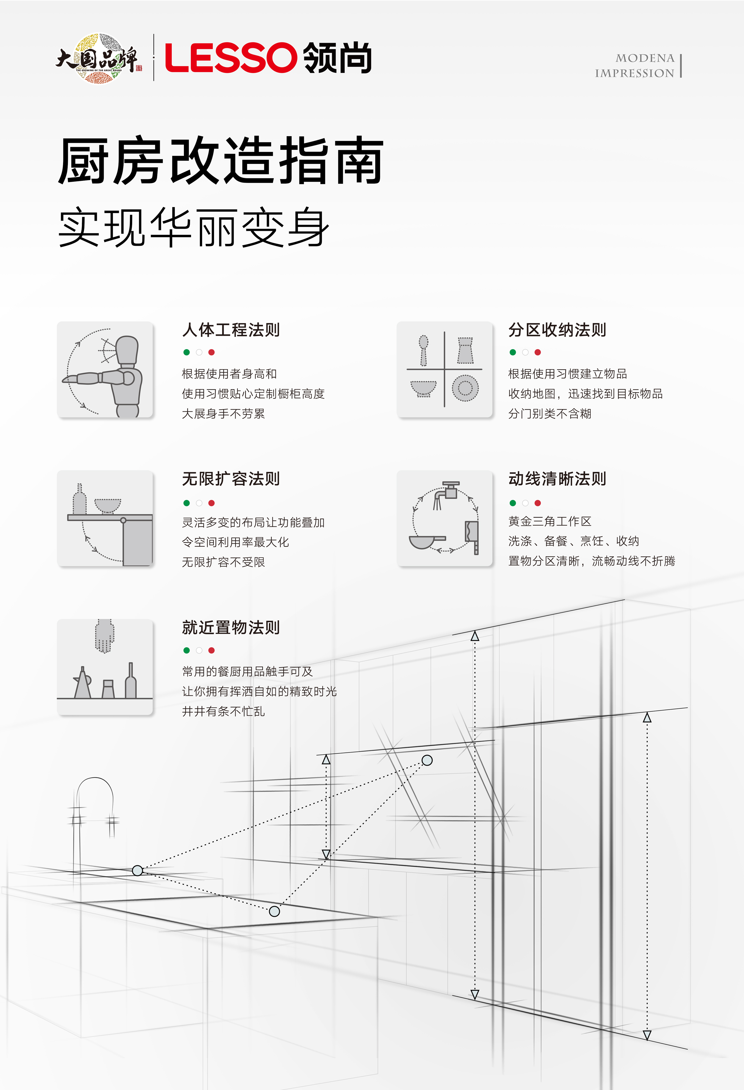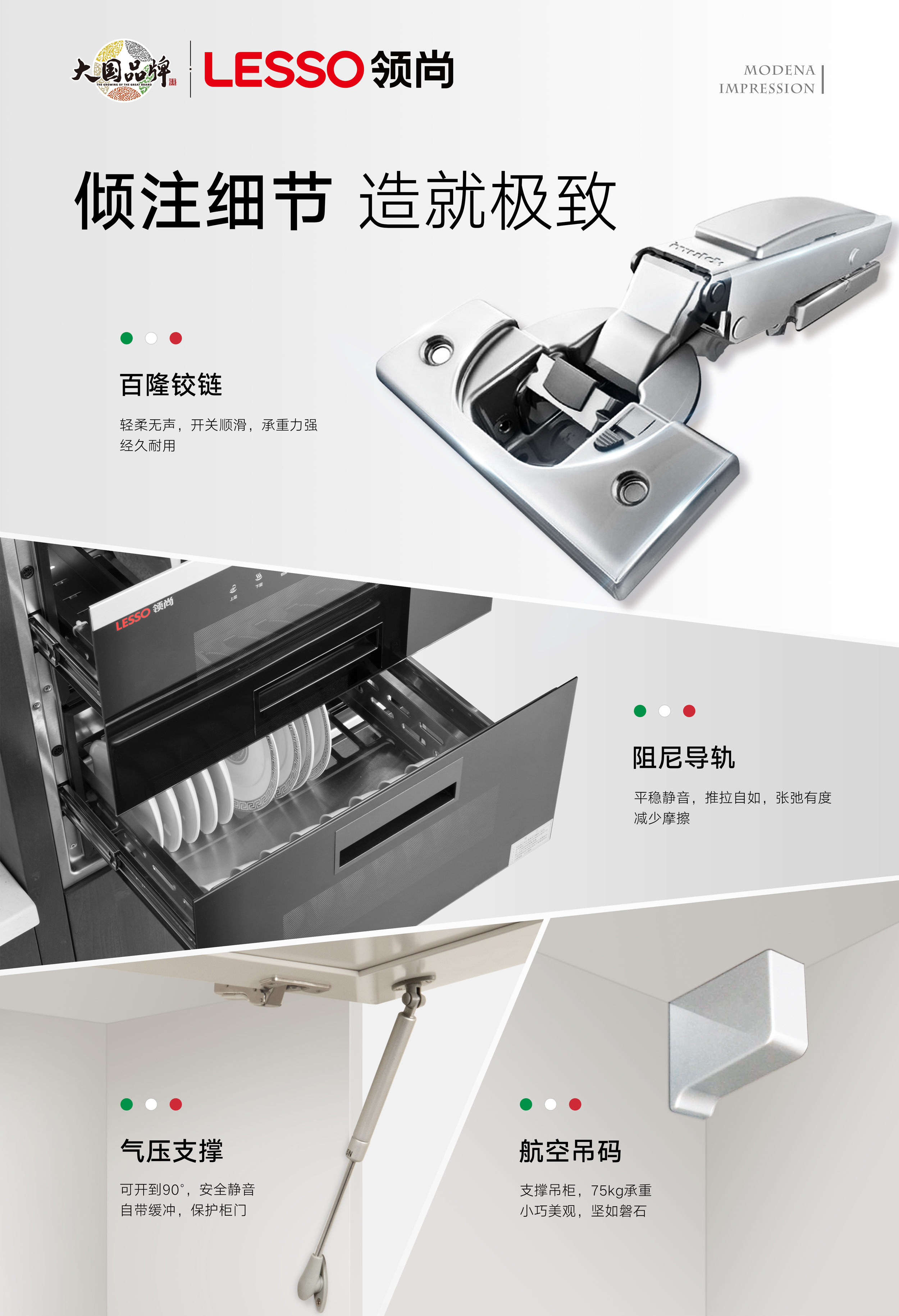5、更多人性化功能采用感應燈光、高柜拉籃、調味拉籃等多功能五金控件,不僅讓廚房工作更輕松,更加大收納空間。