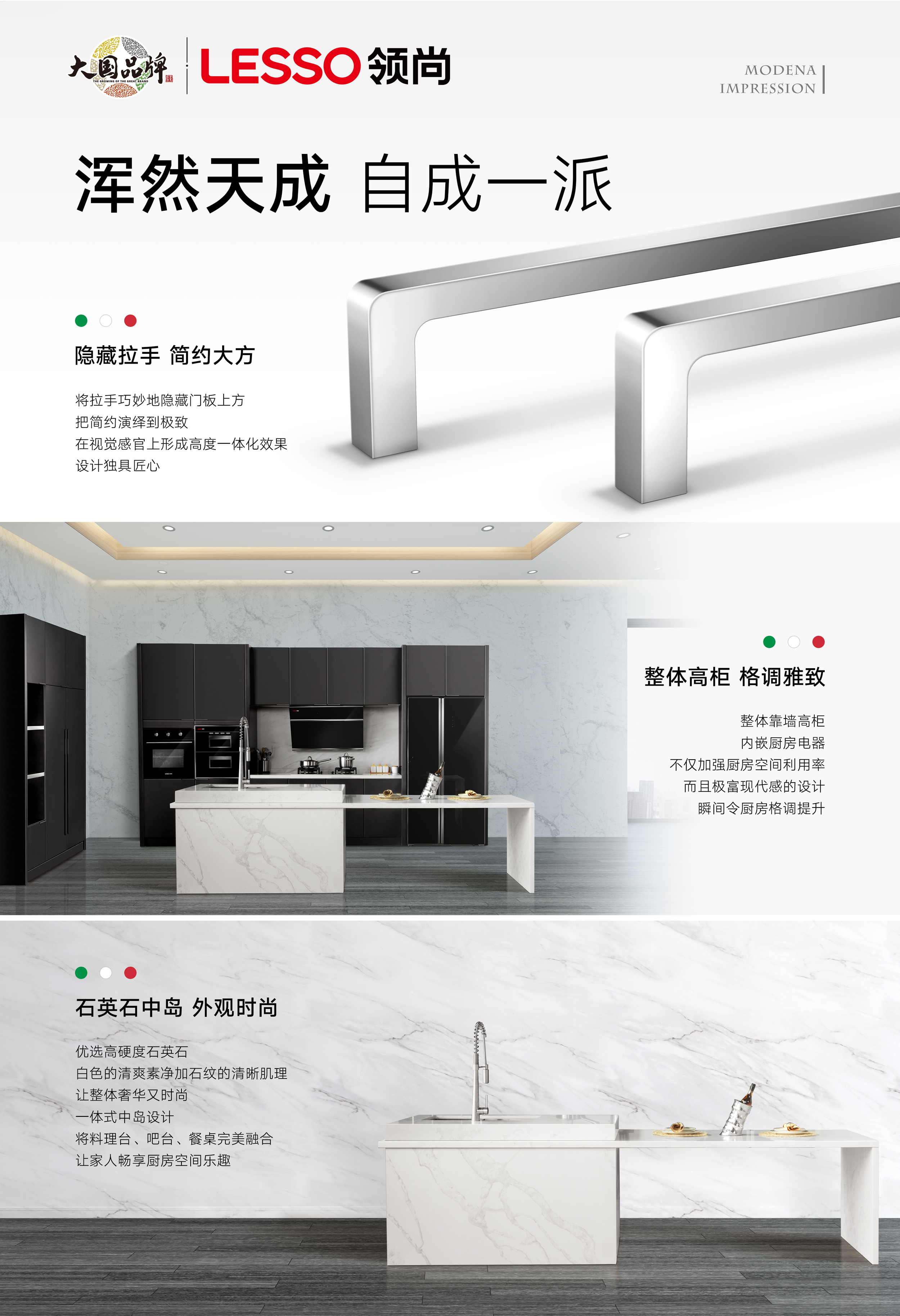 2、隱藏拉手簡約大方將拉手隱藏于設計之中,在視覺感官上形成高度一體化效果,設計獨具匠心。