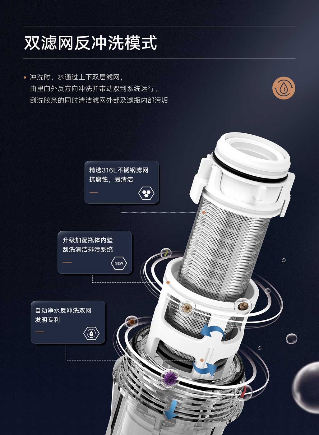 ②智能自動沖洗技術,專利排污系統,高效清洗濾芯