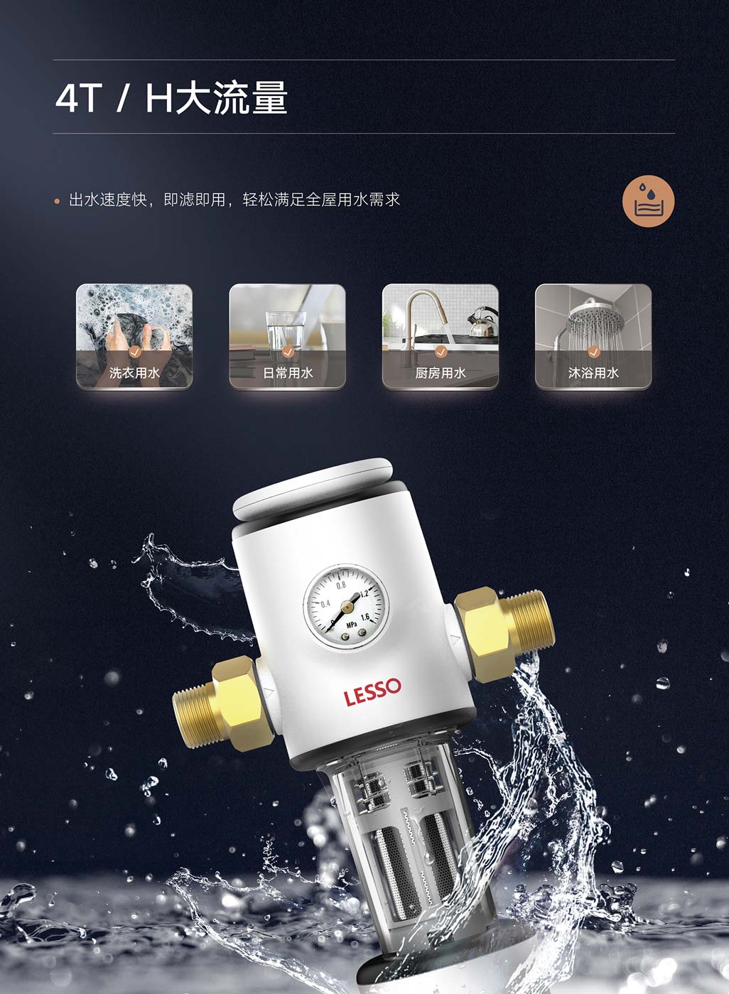 隨著健康飲水觀念的普及,越來越多的家庭意識到凈水設備的重要性。在滿足家庭日常用水健康需求方面,大通量凈水機成為了市場的熱門選擇。其中LESSO領尚大通量凈水機以其高效過濾、大通量供水和智能便捷的特點,贏得了廣大用戶的青睞。