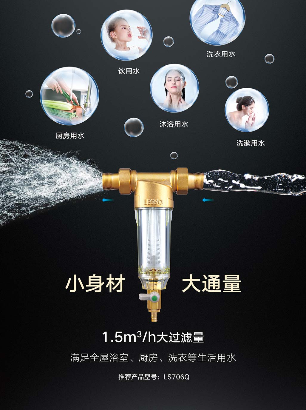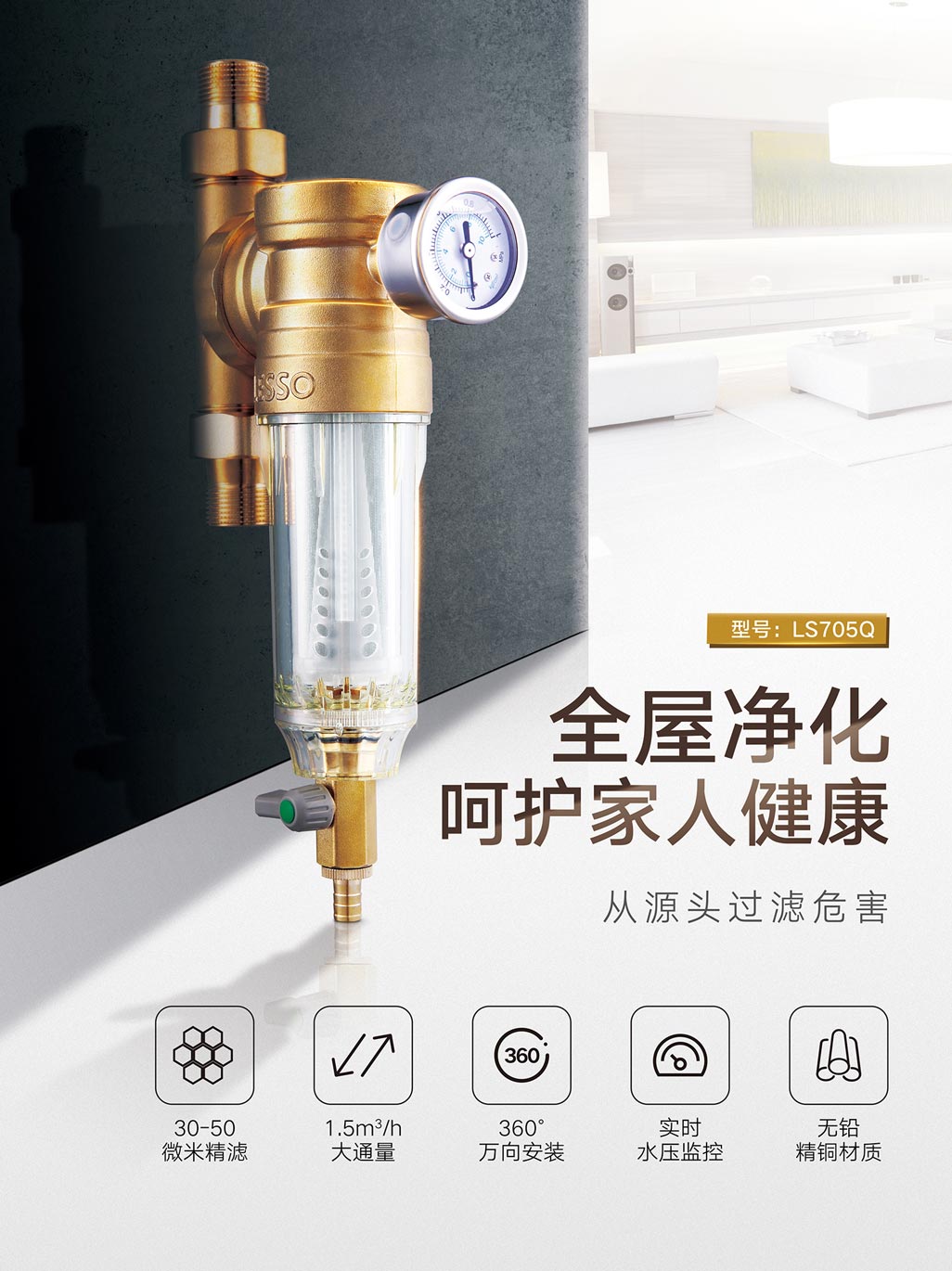 規(guī)格:90x60x212(mm)過濾精度:30-50μm出水流量:2.5-3.5T/h進(jìn)出水口徑:G3/4"適用水源:市政自來水