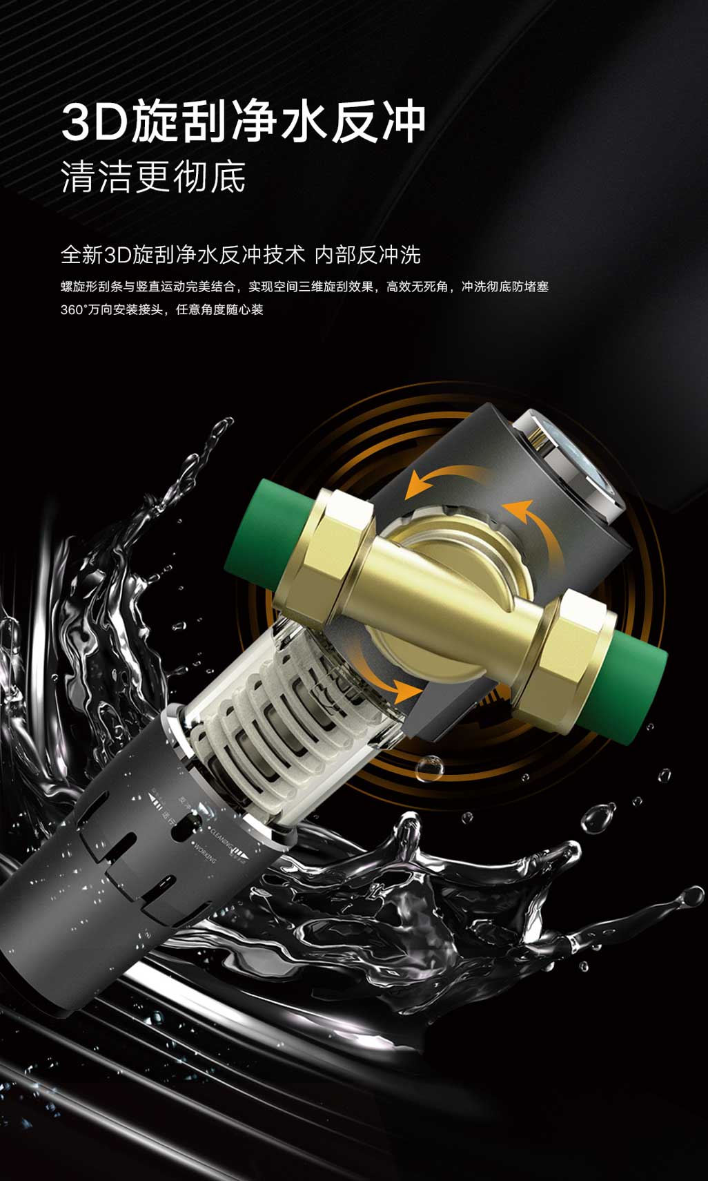 ②反沖洗搭配雙面旋掛技術,高效清洗濾芯